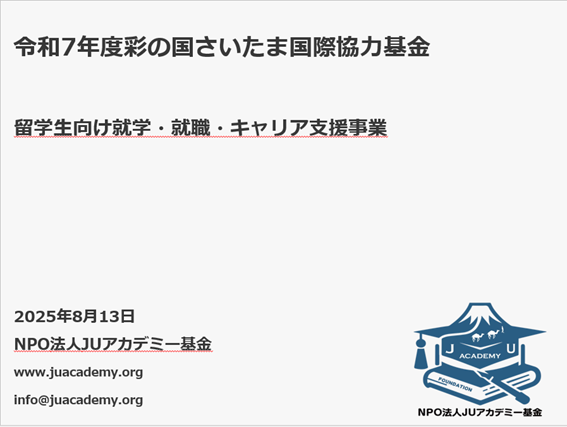 | NPO法人JUアカデミー基金 | 留学生向け 就学・就職・キャリア支援事業 | 200,000 |